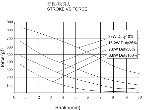 縱向:代表電磁鐵在對應行程時的力量   單位為克(g