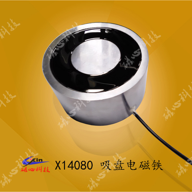 吸盤電磁鐵X14080是由直徑140mm,高度80mm ,表面有防水灌封膠組成的一種防水吸盤電磁鐵。