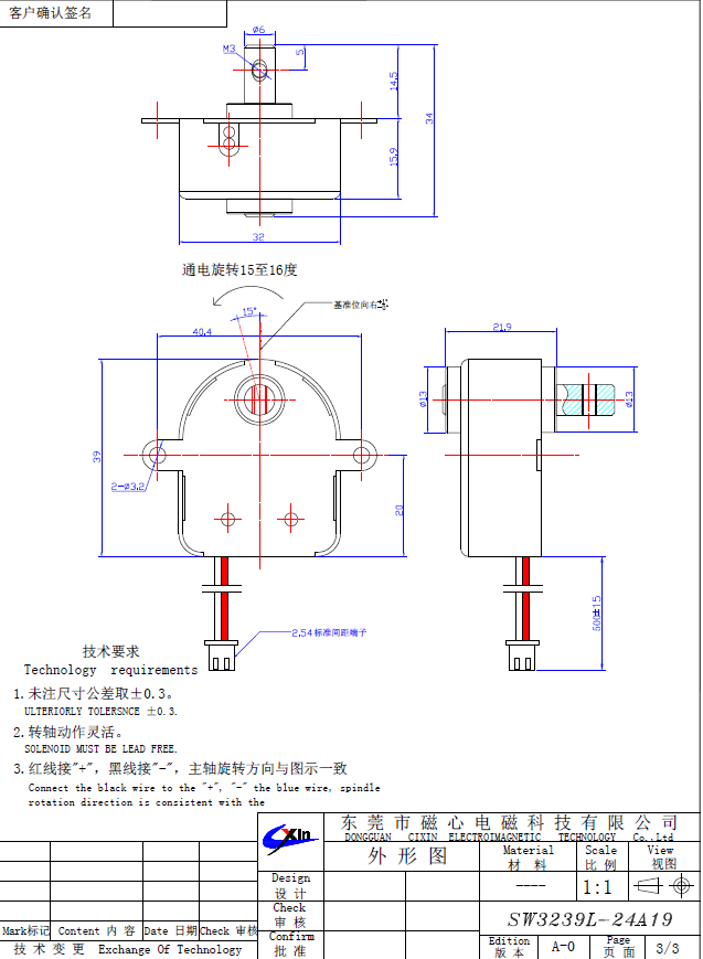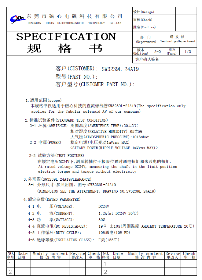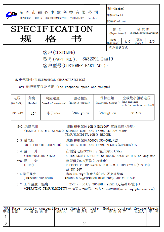 SW3239旋轉電磁鐵的規格書如下:
