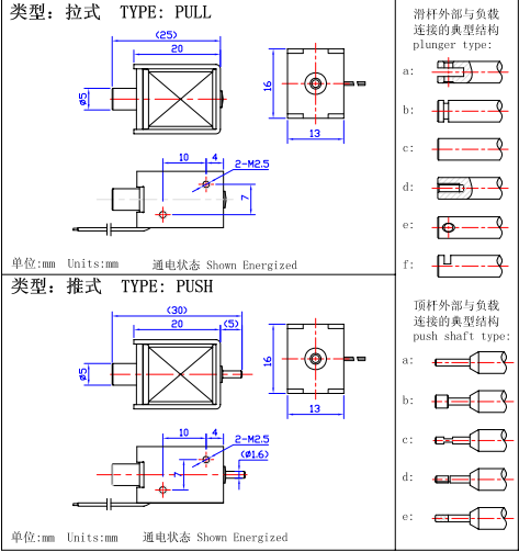 一、U0520微型推拉電磁鐵的尺寸圖: