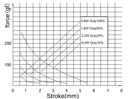 縱向:代表電磁鐵在對應行程時的力量   單位為克(g